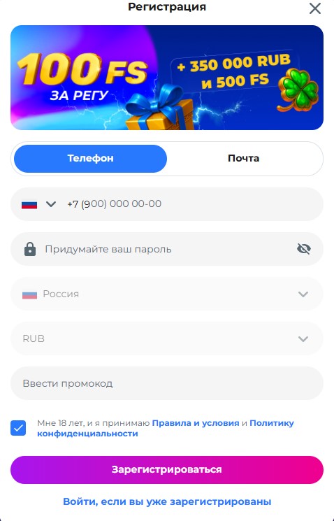 Регистрируйся и получай до 350 000 и 600 фриспинов